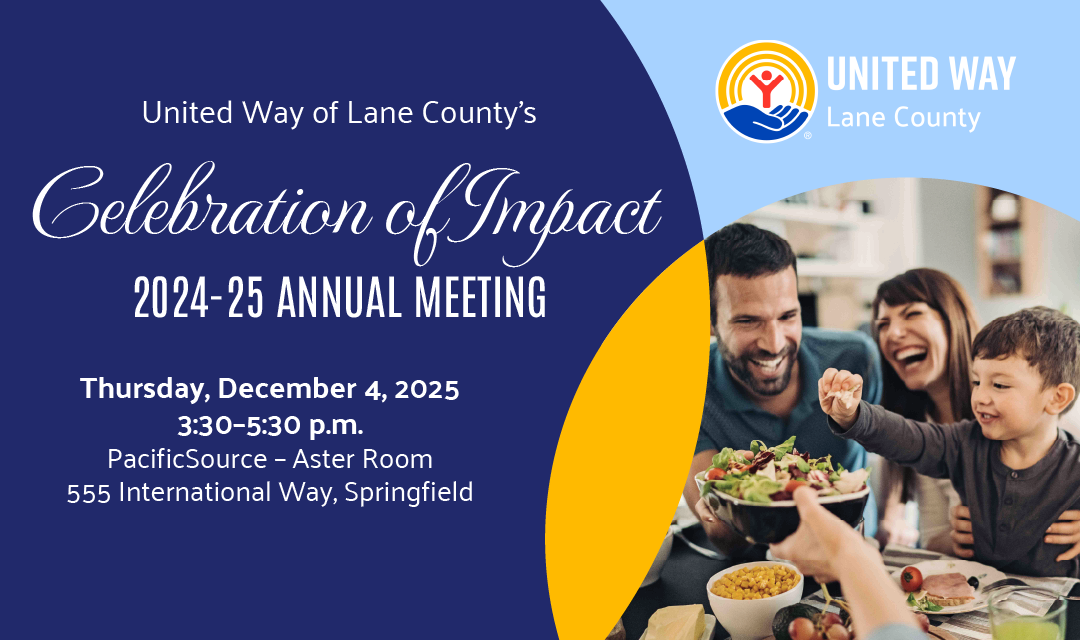 Join us for an afternoon of celebration and connection! As we close out 2025, we’re excited to gather with you—our partners and supporters—to reflect on our shared impacts in Lane County from 2024-25. Together, we’ll hear local stories and share what’s ahead for 2026.